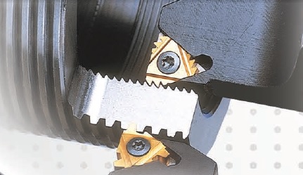 Complete range of thread turning inserts, multi tooth inserts, on- edge inserts and tool holder